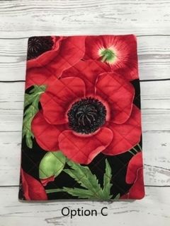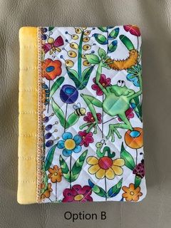 Quilted Book cover, has elastic on back to flip over to front to hold book closed.